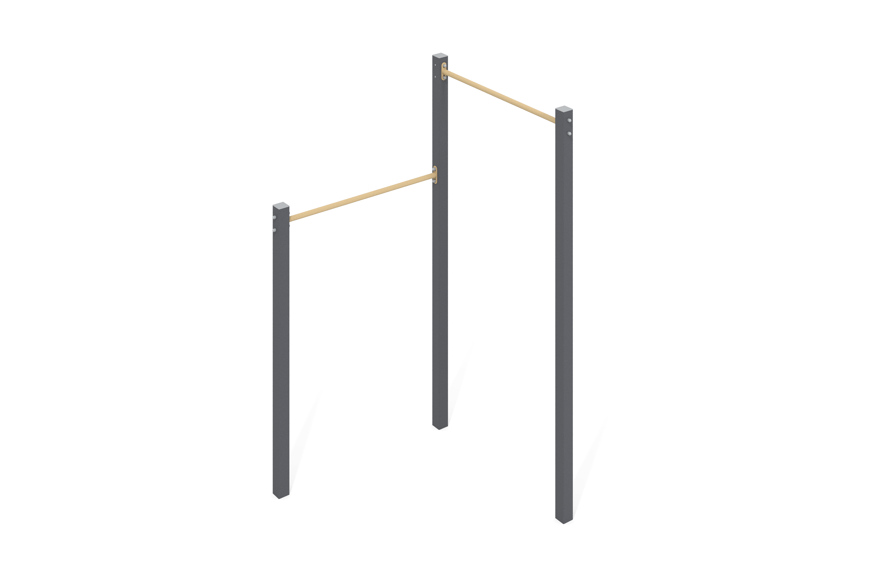 The suspension bridge is designed for installation on open playgrounds and offers children the opportunity to actively have fun. The structure includes sturdy reinforced rope, ensuring reliability and stability. Railings stretched between support posts provide additional safety. The posts are tall enough to create an interesting element for play and exploration. This bridge will be an excellent addition to any playground, promoting physical activity and coordination development in children.